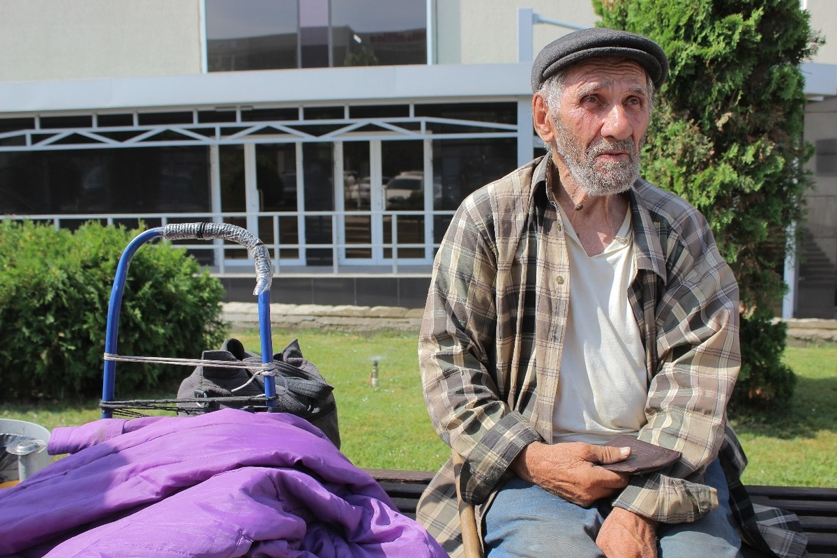Бездомный старик живет на лавочках Новороссийска уже пятый год