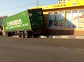 Утром 12 июля на улице Куникова, в районе АЗС Дюрсо большегруз,скорее всего,не справился с управлением и влетел на бардюр,при этом зацепив магазин остановочного комплекса. К счастью, никто не пострадал.