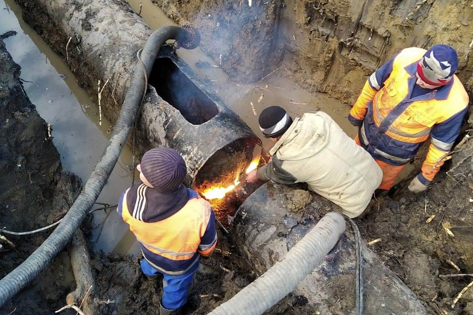 Несложно догадаться, что за столько лет стальные трубы износились до такой степени, что потеряли способность обеспечивать ведение полноценного технологического процесса водоснабжения. Так, аварийный участок сборного водовода протяженностью 35 метров был демонтирован, на его место рабочие установили новый стальной трубопровод. Траншею по всей длине участка для него подготовили заранее, в том числе заблаговременно была осуществлена плеть трубопровода.