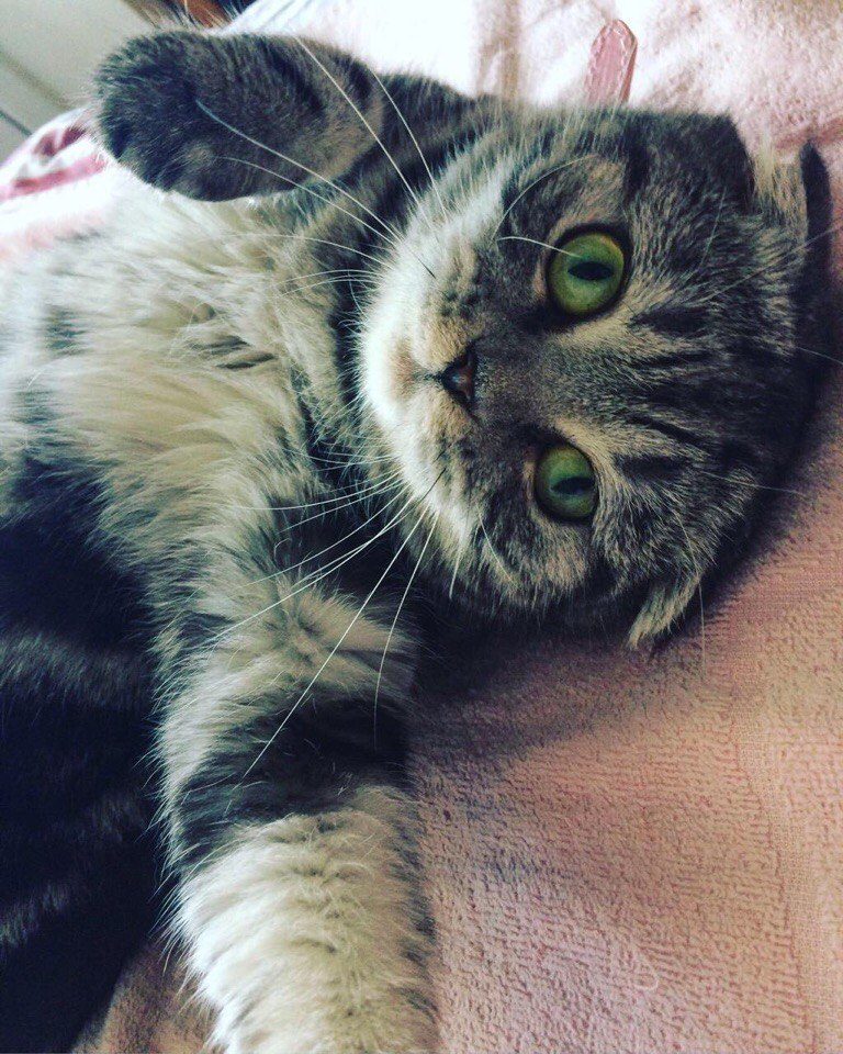 Знакомьтесь, кошка по кличке Лайна. Возраст её 3 года. Милое существо с плюшевой шубкой, круглой мордочкой и большими глазами, очень много кушает.