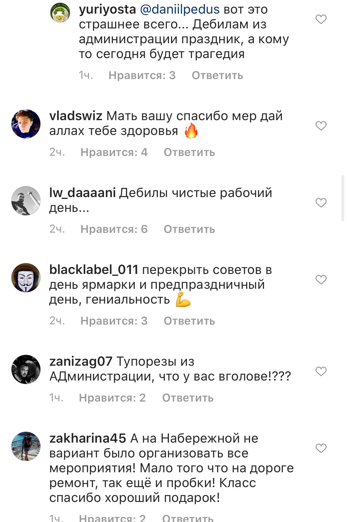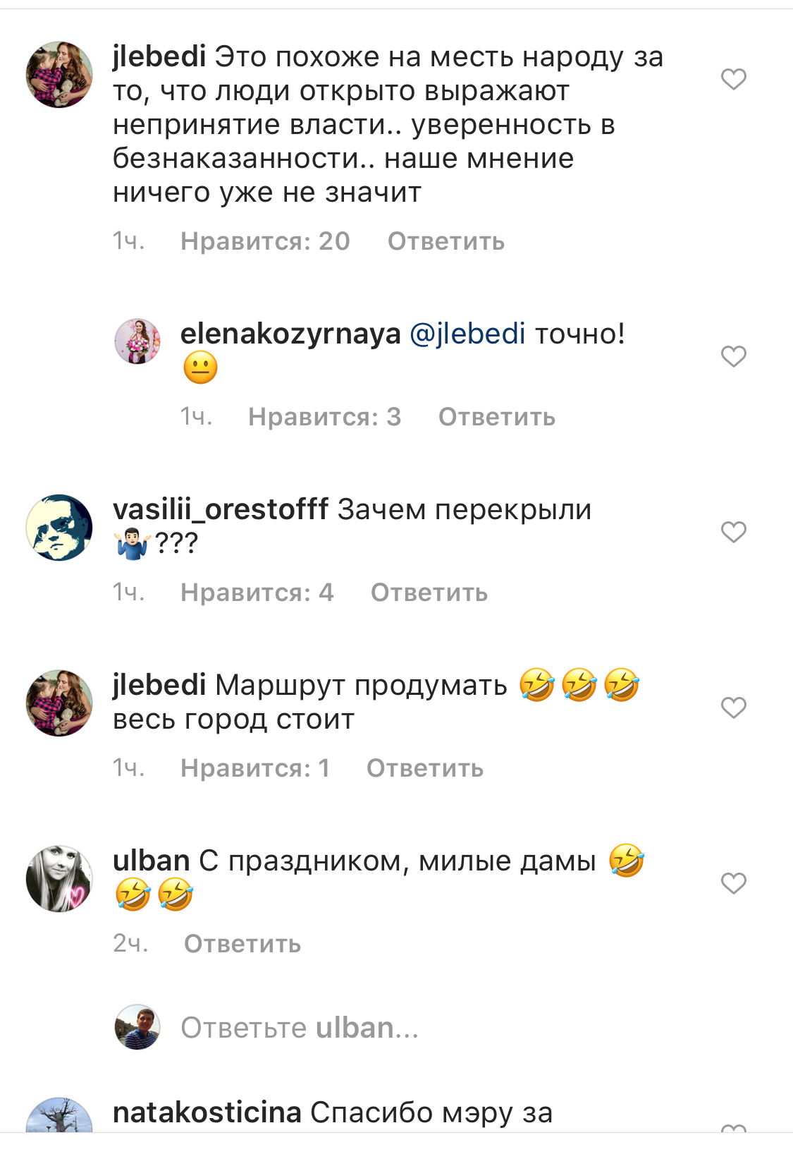 Редакция решила не цитировать самые яркие высказывания, вы можете сами ознакомиться с ними и сами сделать выводы. Будем надеяться, что власть города начнет слышать жителей. И хотя бы объяснит свои непонятные большинству нормальных людей решения.