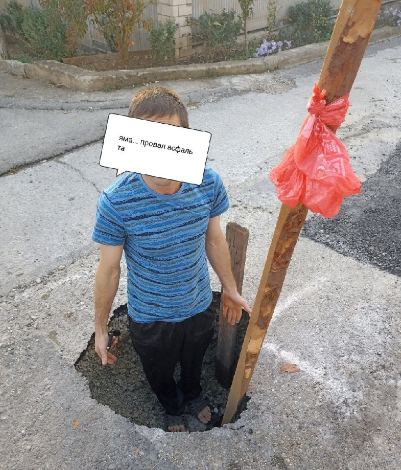 Прибыв на Черноморскую, корреспондент обнаружил ту самую яму, в которую наполовину помещался Михаил.