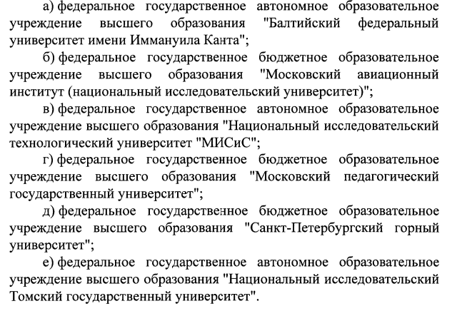 До 30 июня вузы подготовят программы, и уже в этом учебном году начнется реализация проекта. Срок освоения базового высшего образования от 4-6 лет. Программа магистратуры – от 1-3 года – в зависимости от направления подготовки. Полный список вузов, участвующих в проекте, приведен ниже.