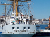 Пожалуй, ничего удивительного в том, что новороссийцы так любят фрегат, нет. «Херсонес» - это учебный трёхмачтовый фрегат, являющийся учебной базой морских вузов, в том числе и новороссийской «Ушаковки». А всё потому, что все 26 парусов «Херсонеса» управляются исключительно вручную и являются основной силой, обеспечивающей движение судна. Два двигателя с приводом на один винт служат для плавания лишь в штормовых условиях, а также при входе и выходе из порта. Немало курсантов получили на «Херсонесе» свои дипломы.