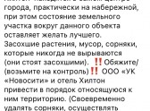 “Жилой комплекс Новосити и отель Хилтон находятся в самом центре города, практически на набережной, при этом состояние земельного участка вокруг данного объекта оставляет желать лучшего. Засохшие растения, мусор, сорняки, которые никогда не вырываются (они стоят засохшими)”.