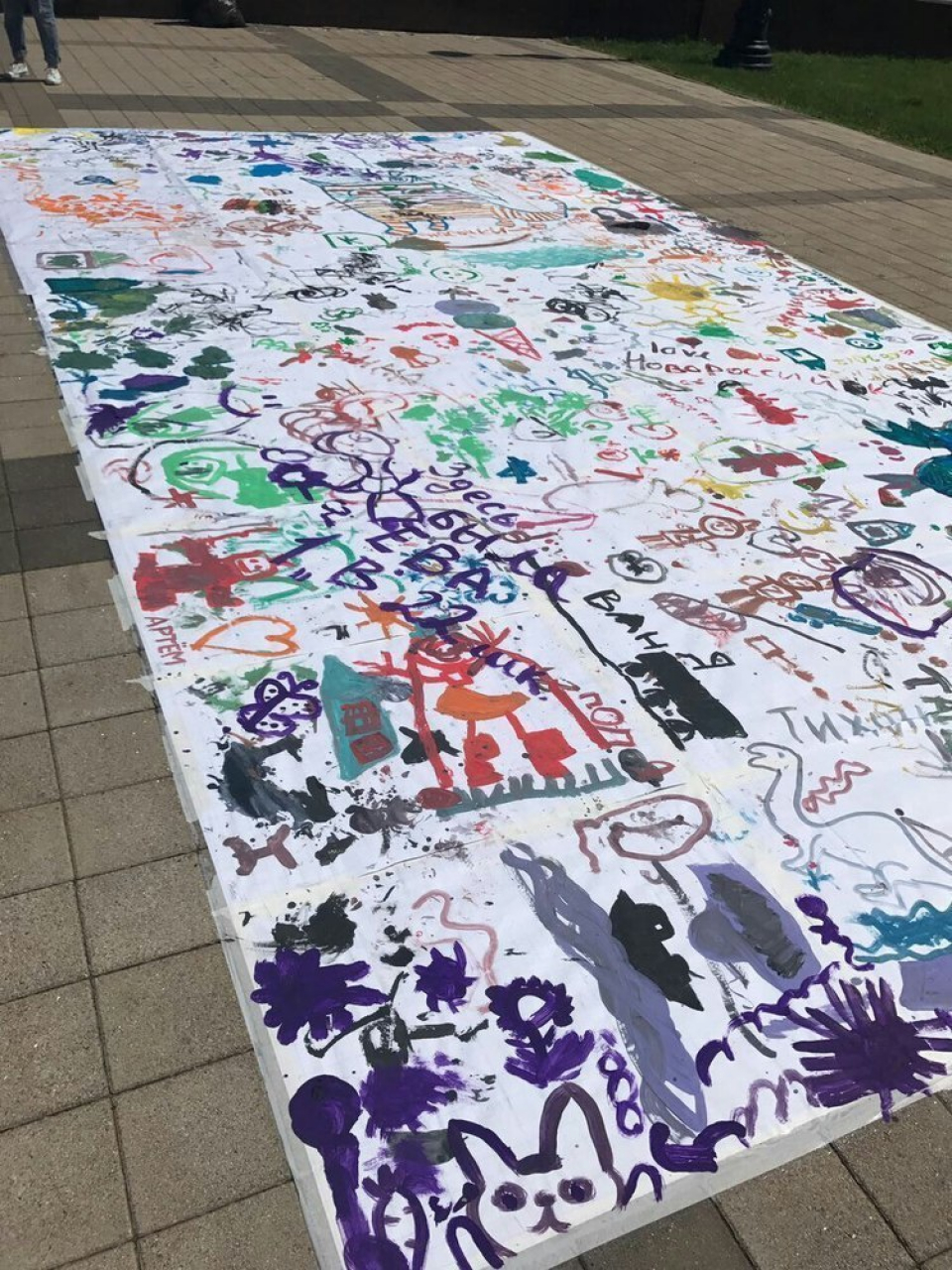 Также, на праздники дети нарисовали самый большой детский рисунок под руководством Новороссийской художественной студии.