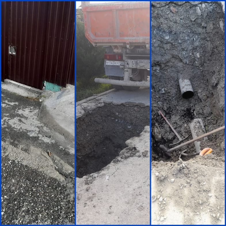 На месте уже стояла специальная техника. Рядом с ней у большой дыры в бетоне стояла Валентина Александровна – хозяйка дома напротив. Именно в её подвал активно затекала вода.