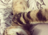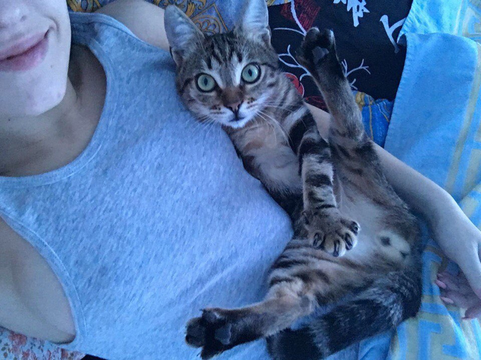 Приветствуем всех, знакомьтесь, это Валера, ему 2 года. У Валеры было страшное детство. Нашли его на мусорке, гниющего заживо, с рваными ранами и опарышами. Неизвестно что случилось, мопед сбил или "добрые люди постарались". Врачам пришлось удалить правую лапу и некоторые пальцы. Сказали: «Если до утра доживет - будем бороться дальше». Теперь прошлое забыто. Отсутствие лапы не мешает ему бегать и держать дом в страхе (остальные коты и собакен под контролем Валеры). Только во сне постоянно он куда-то бежит. Наверное убегает от того самого мопеда или обидчиков. Самый преданный кот на свете! Потерял лапу, но не веру в человечество!
