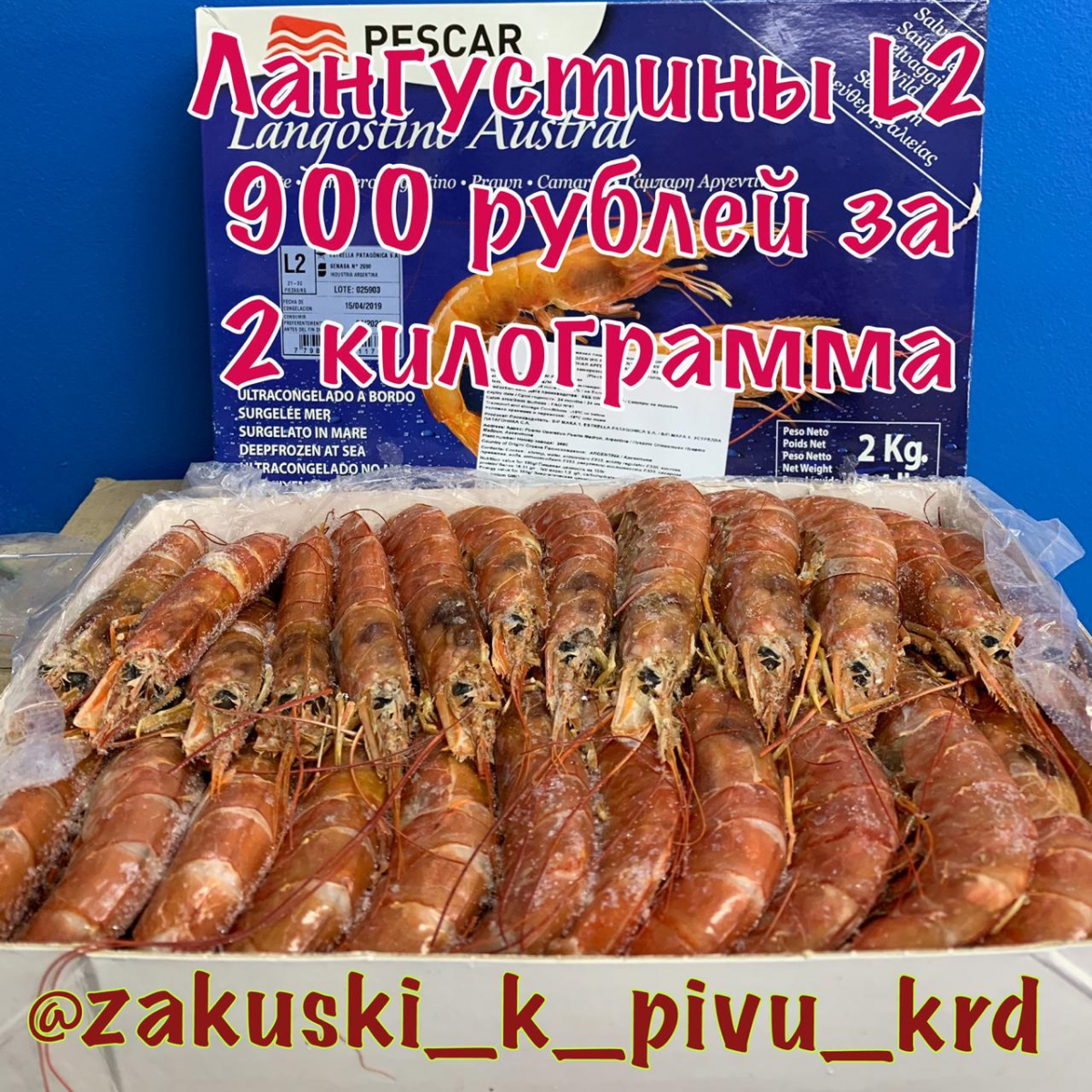 Лангустины L2 за 2 кг — 900 рублей.